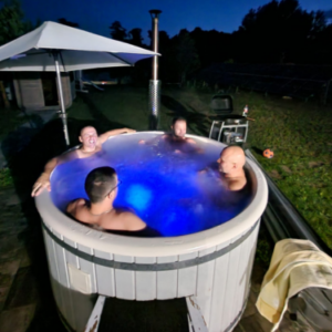 - Balia z gorącą wodą i bąbelkami pod gołym niebem
