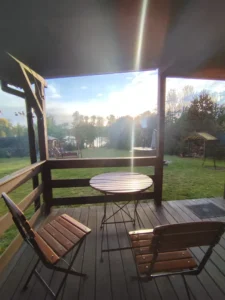 Dźwięk palonego drewna, zapach lasu, jezioro o krok od tarasu i absolutny spokój. To miejsce naprawdę regeneruje.